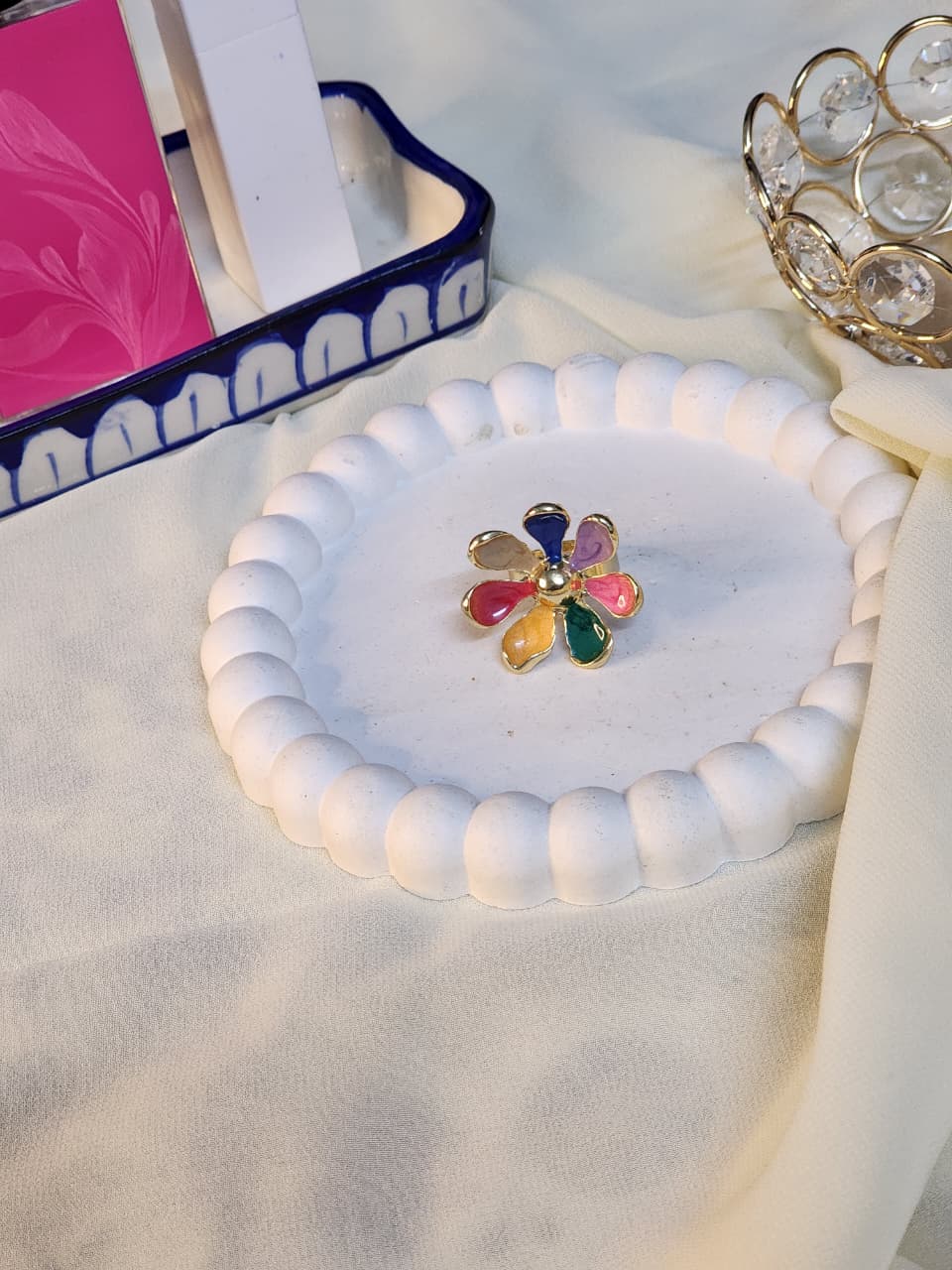 Rainbow Blossom Statement Ring